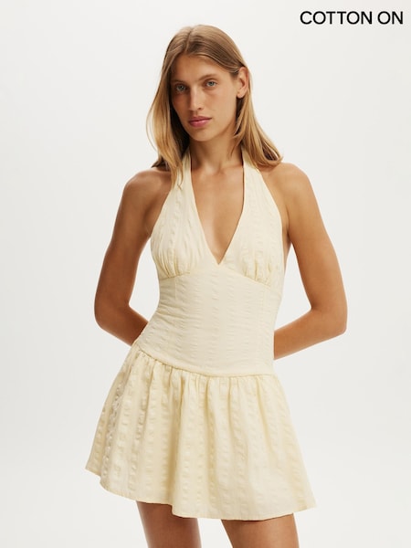Cotton On Natural Kaity Halter Mini Dress