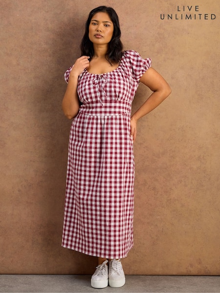Live Unlimited Red Gingham Shirred Back Midaxi Dress