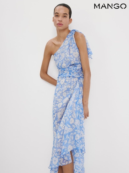 Mango Blue Asymmetrical A-Line Maxi Dress