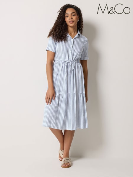 M&Co Blue Embroidered Tie Waist Maxi Dress