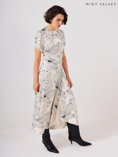 Mint Velvet Cream Floral Print Satin Midi Dress