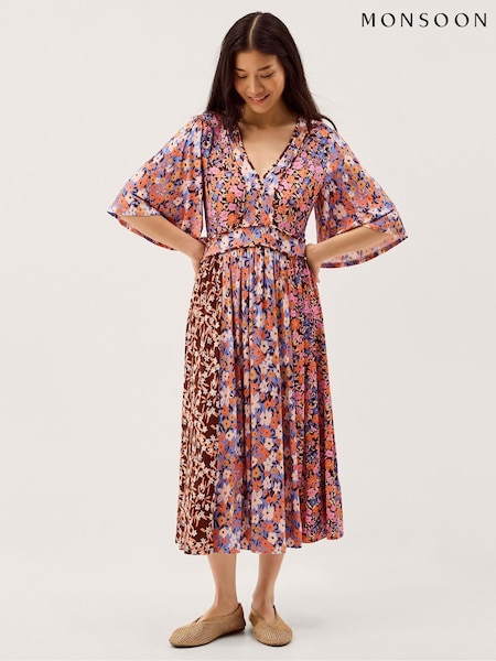 Monsoon Orange Ceri Floral Print Jersey Midi Dress