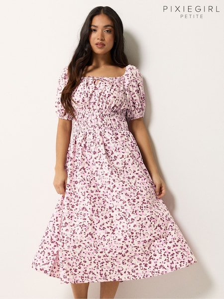 PixieGirl Petite Pink Animal Print Puff Sleeve Midi Dress