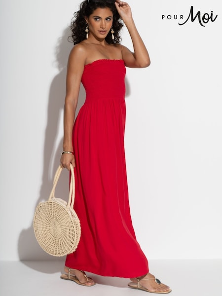 Pour Moi Red Emma Strapless Shirred Bodice Maxi Beach Dress