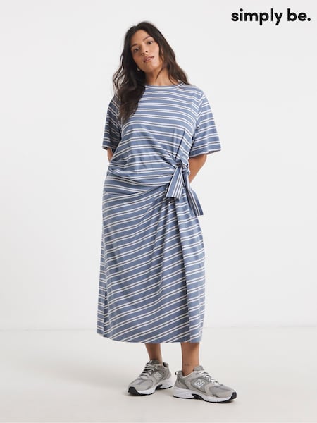 Simply Be Blue Stripe Jersey Midi With Side Tie
