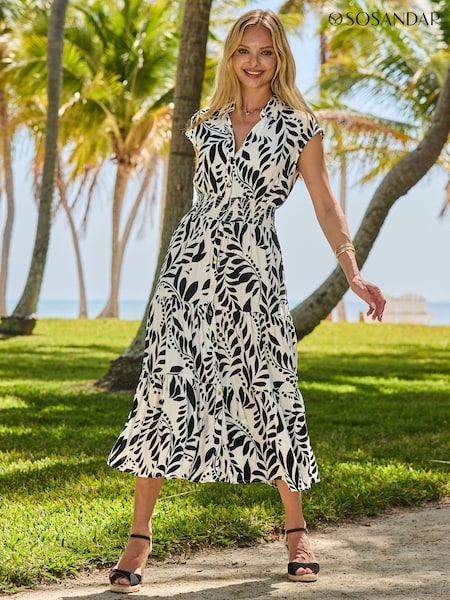Sosandar Black Petite Floral Print Shirred Waist Shirt Dress