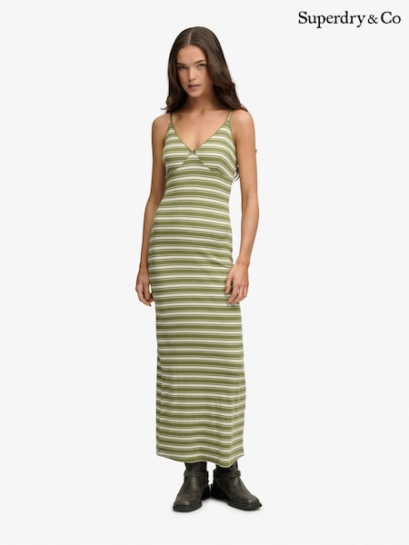 Superdry Green Printed Button-Up Cami Midi Dress