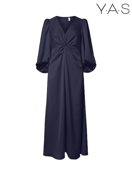 Y.A.S Blue Half Sleeve Ruched Maxi Dress