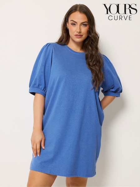 Yours Curve Blue Filled Sleeve Tunic Midi Dress