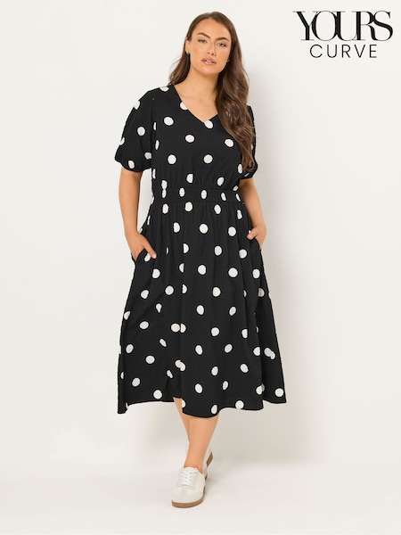 Simply Be Black Polka Dot Long Sleeve Wrap Smock Dress