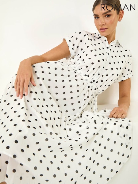 Sosandar White Spot Print Linen Blend Shirt Dress