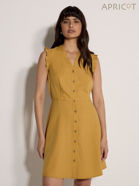 Apricot Yellow Ruffle Button-Down Mini Dress