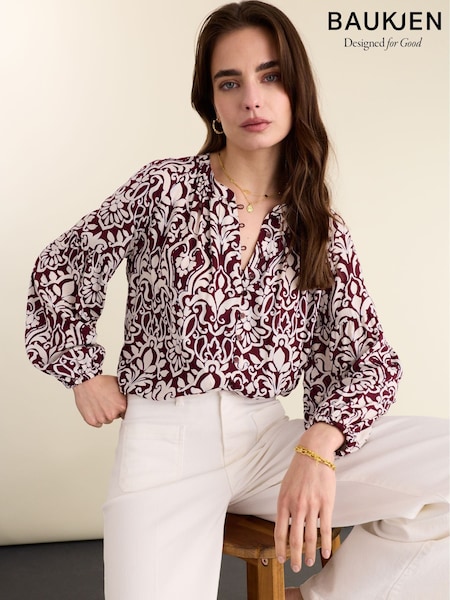 Baukjen Purple Ischia Printed Bow Neck Blouse