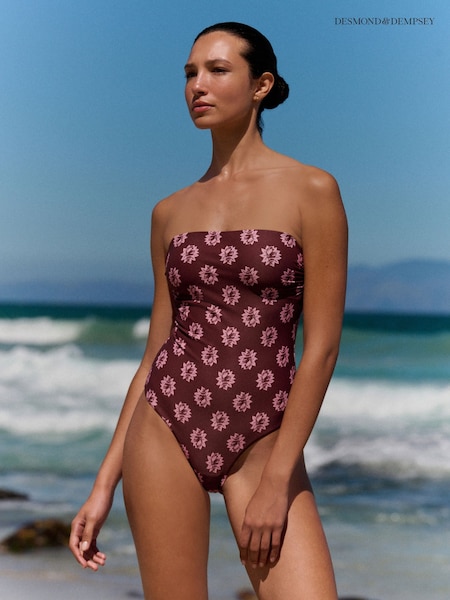 Daily by Desmond and Dempsey Chocolate Brown Shell Bandeau Swimsuit with Tummy Control and removable straps