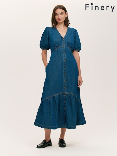 Finery Blue Goldie Denim Button Through Midi Dress