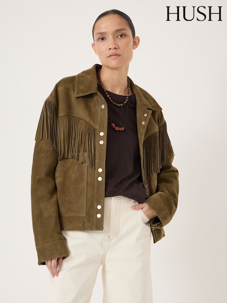 Hush Green Oona Fringe Suede Jacket