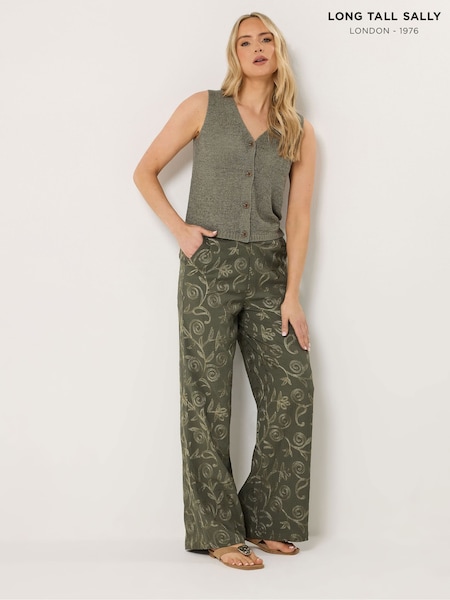 Long Tall Sally Green Floral Embroidered Wide Leg Trousers