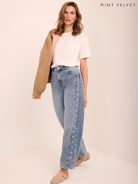 Mint Velvet Blue Floral Embroidered Jeans