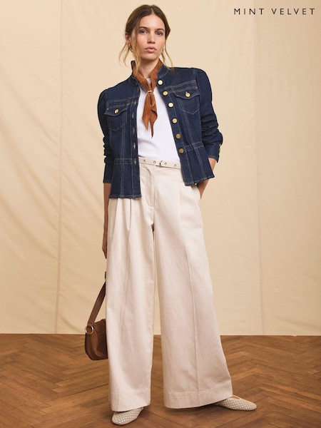 Mint Velvet Cream Pleat Detail Crop Wide Trousers