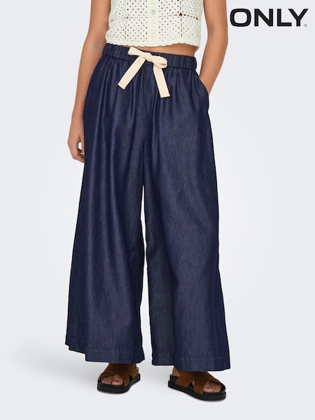 ONLY Brown Tie Front Linen Blend Top With Smock Details