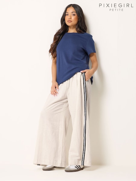 PixieGirl Petite Natural Linen Blend Wide Leg Trousers