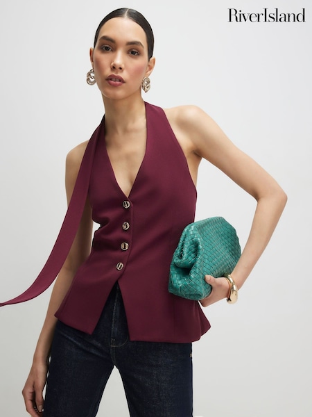 River Island Red Sleeveless Scarf Neck Waistcoat