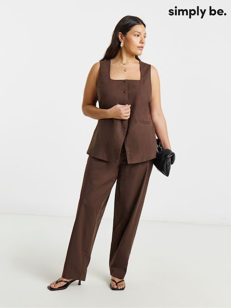Simply Be Brown Square Neck Longline Linen Waistcoat