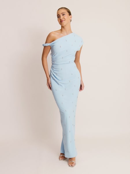 Six Stories Blue Asymmetric Beaded Maxi Dress