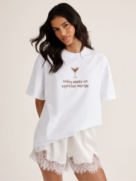 Six Stories White Espresso Slogan T-Shirt