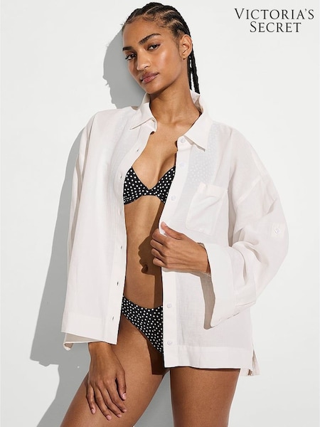 Victoria's Secret White Long Sleeve Linen Shirt