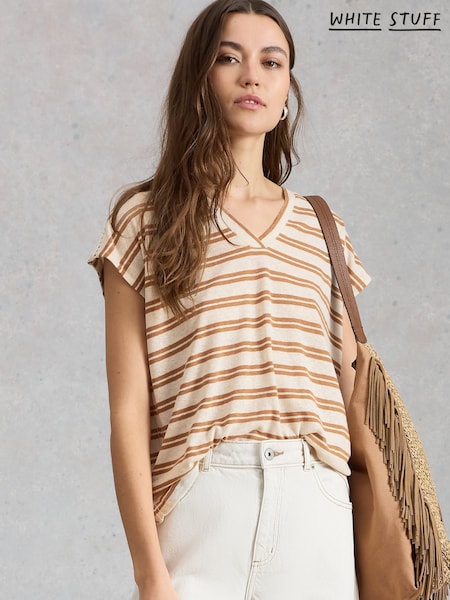 White Stuff Brown Cooper Knitted Stripe Polo Shirt