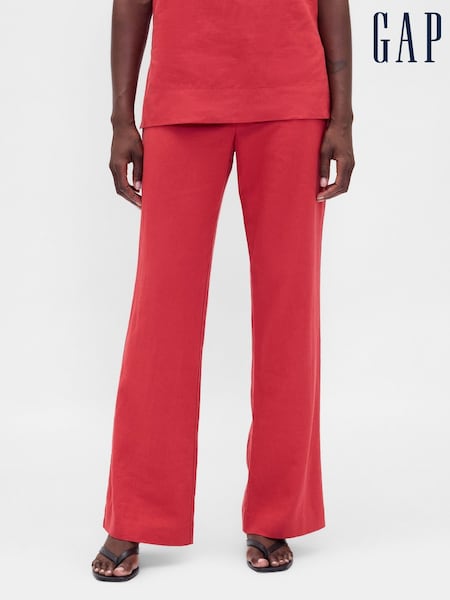 Gap Red Low Rise Linen-Blend Flare Trousers