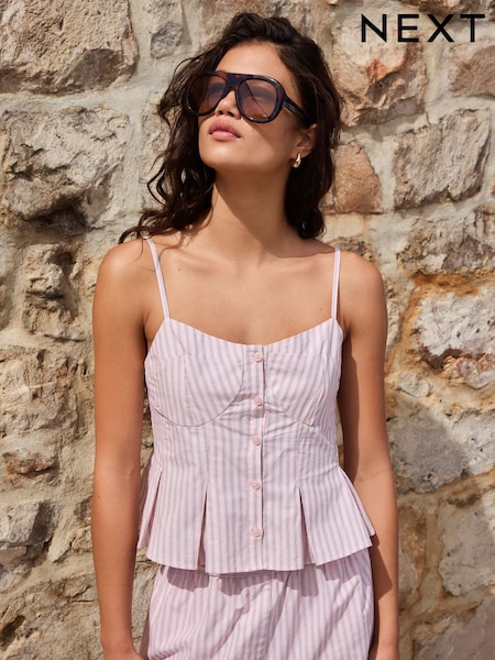 Pink/White Stripe Peplum Hem Cami Top