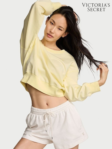 Victoria's Secret Lemonade Yellow Terry Cropped Crewneck Sweatshirt