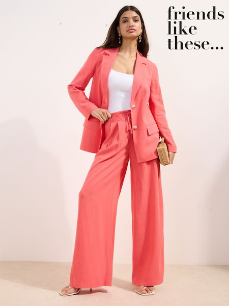 Friends Like These Coral Pink Petite Super Wide Leg Trousers with Linen