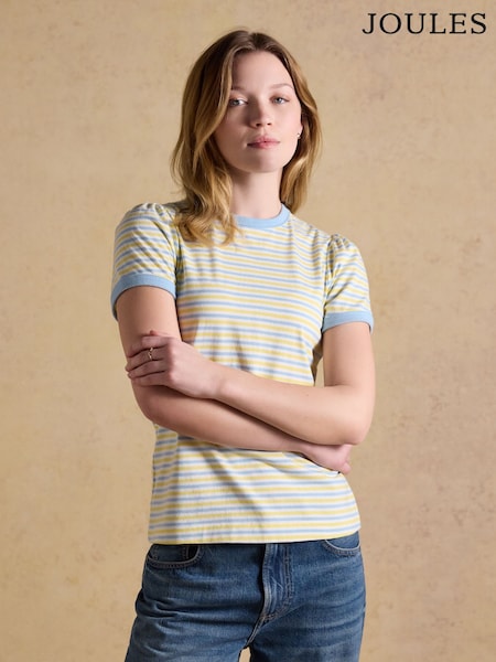 Joules Erin Blue/Yellow Stripe Short Sleeve Jersey T Shirt
