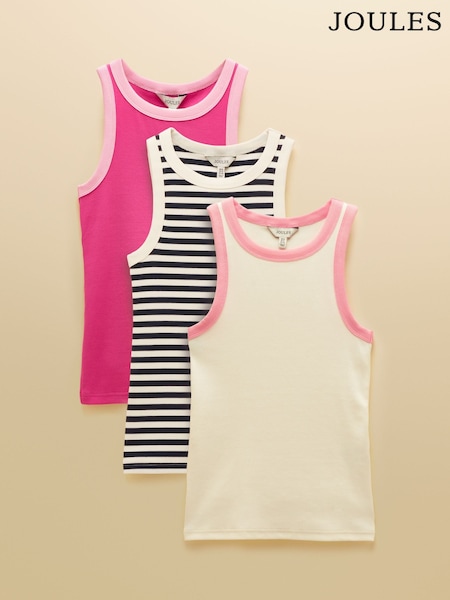 Joules Sofia Navy/Cream/Pink Ribbed Jersey Vests 3 Pack