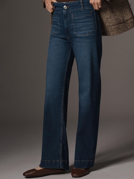 Anthropologie Blue Maeve Colette Full Length Wide Leg Jeans