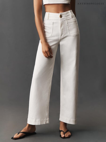 Anthropologie Maeve The Colette Full-Length Wide-Leg White Jeans