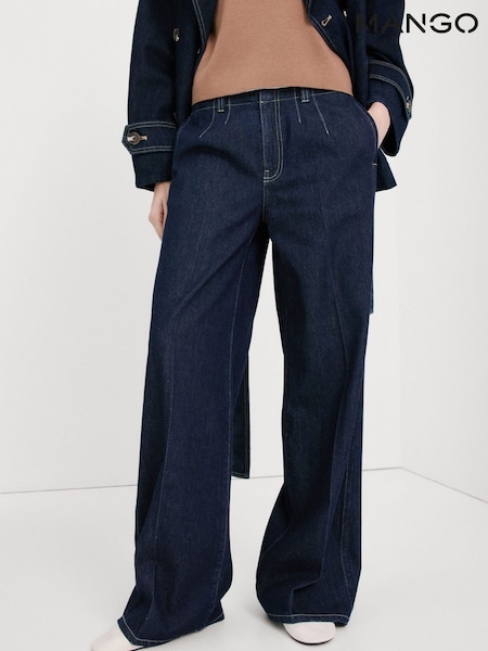 Mango Blue High-Waisted Wide Leg Jeans With Stitching Detail