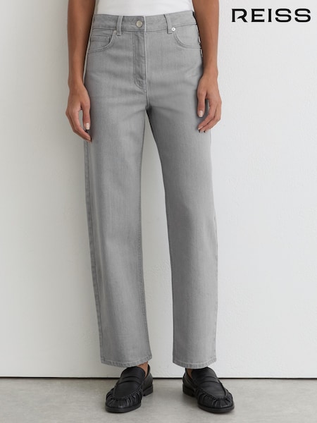 Reiss Washed Grey Molly Petite Barrel-Leg Seam Jeans