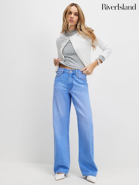 River Island Blue Mid Rise Relaxed Straight Jeans