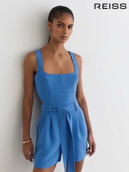 Reiss Dark Blue Dionna Wide-Leg Cut-Out Denim Jumpsuit