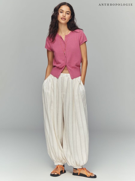 Anthropologie Pointelle Knit Tie-Front Cream Cardigan