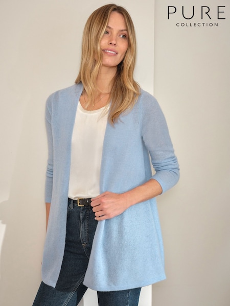 Pure Collection Frosted Blue Lightweight Cashmere Swing Cardigan