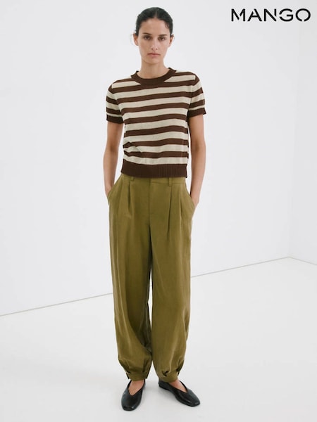Mango Brown Short Sleeve Knitted Top