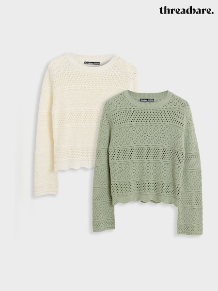 Threadbare Green Long Sleeve Pointelle Crochet Knit Jumpers 2 Pack