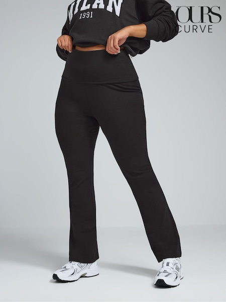 Yours Curve Black Limited Fold Over Kick Flare Leggings