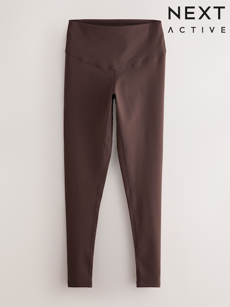 Chocolate Brown Sports Dry Tech Tummy Control High Waist Full Length Leggings