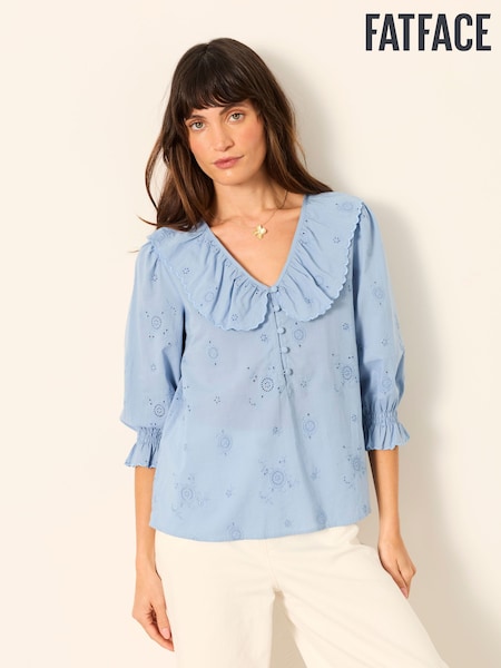 FatFace Carly Blue Broderie Blouse